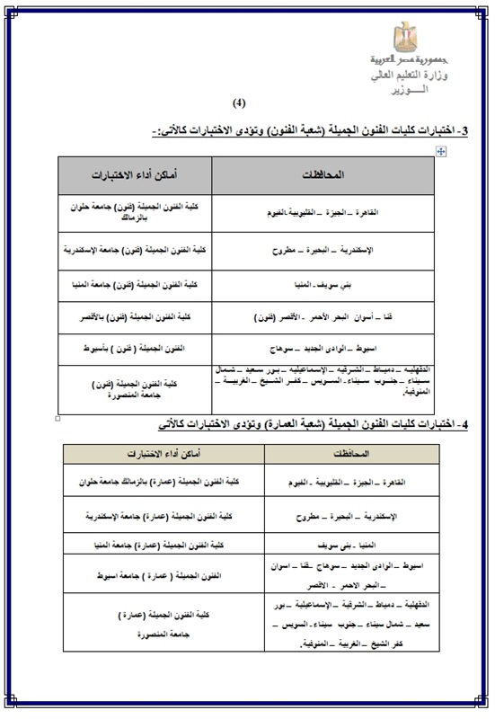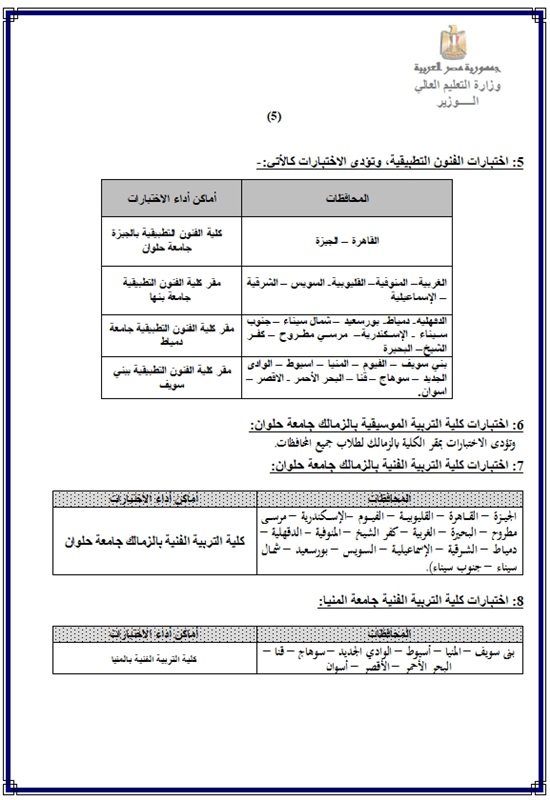 كليات الفنون التطبيقية بجامعات (حلوان ـ دمياط – بنها – بني سويف).