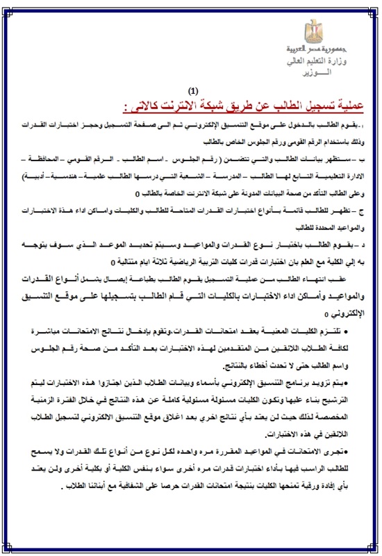 ننشر أماكن ومواعيد اختبارات القدرات لطلاب الثانوية العامة