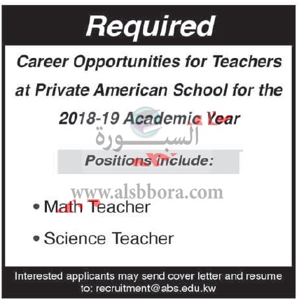 تعلن مدرسة خاصة في دولة الكويت عن وظائف جديدة للمعلمين والمعلمات وذلك وفقا لنص الإعلان التالي:-