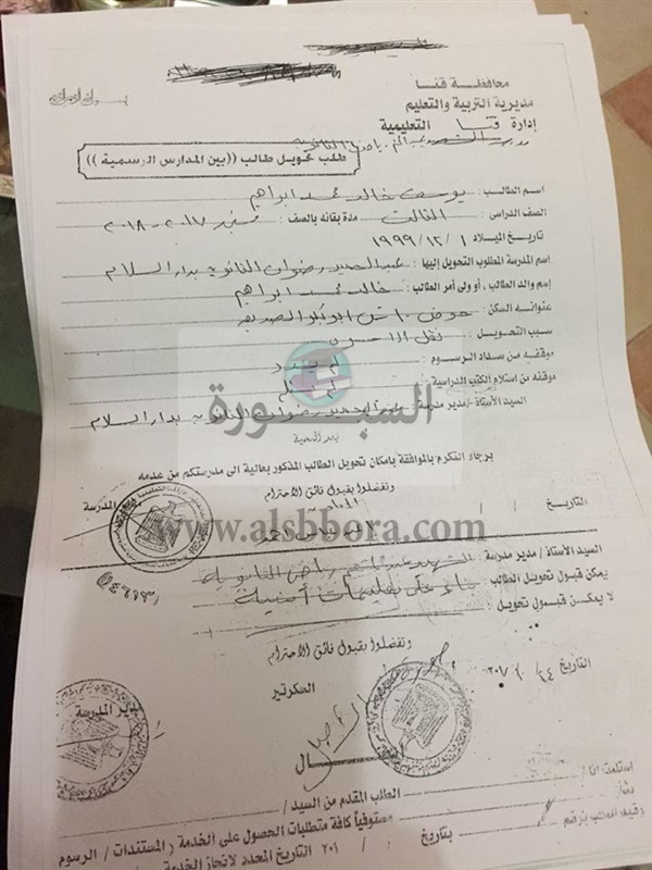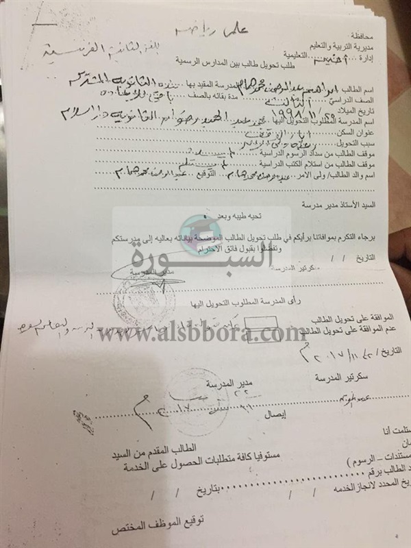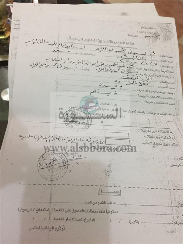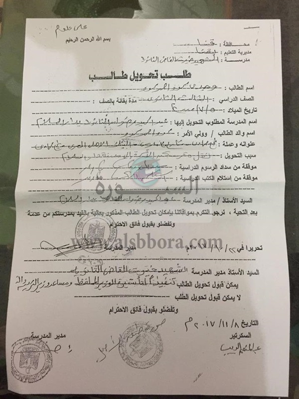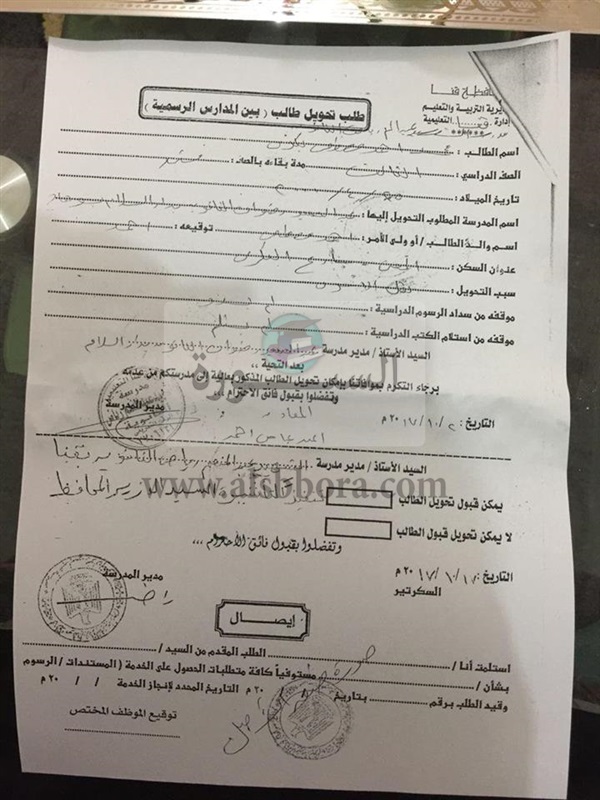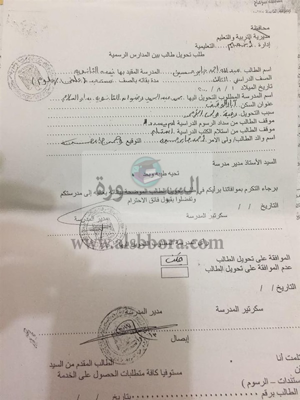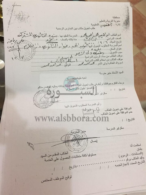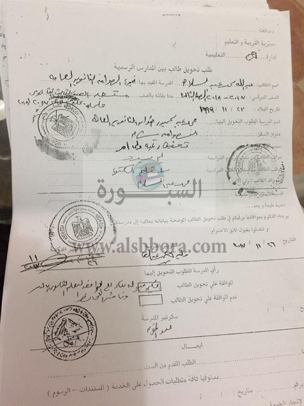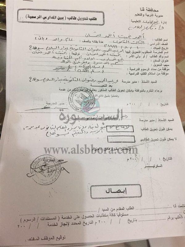 تحويل "استمارة رغبات " من خارج محافظة سوهاج ، و9 حالات اخرى من خارج