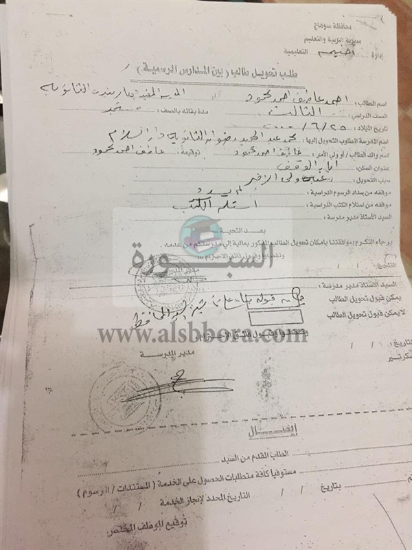 أولياء أمور الطلاب المحولين اتخذوا حيلة بعد قبول تحويلات أبنائهم إلى سوهاج من محافظات