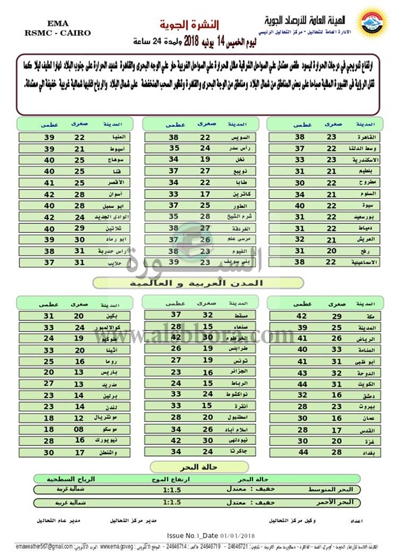 وتابع البيان، أن وجود رياح أغلبها شمالية غربية خفيفة إلى معتدلة.
