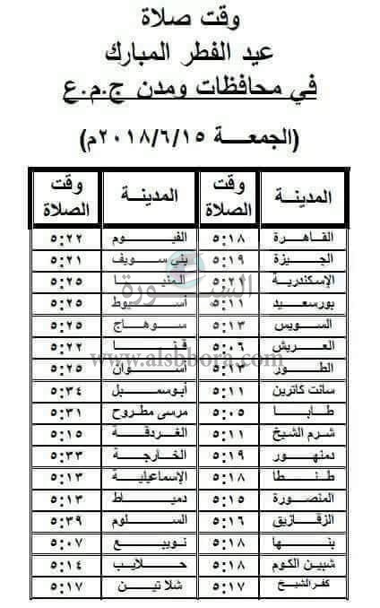 تنشر "السبورة" جدول وقت صلاة عيد الفطر المبارك في المحافظات والمدن.