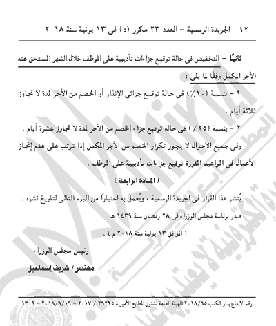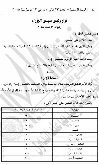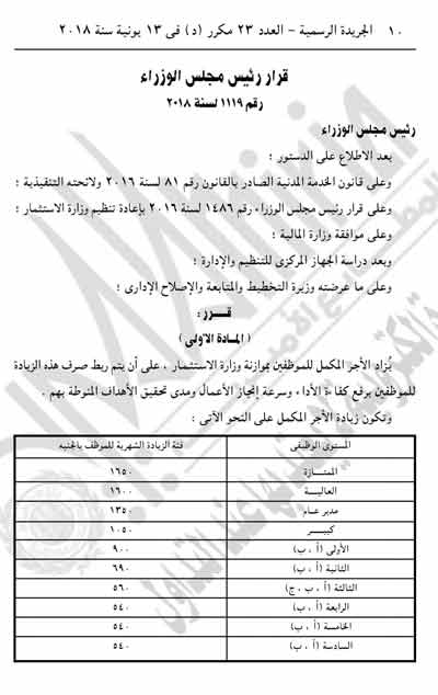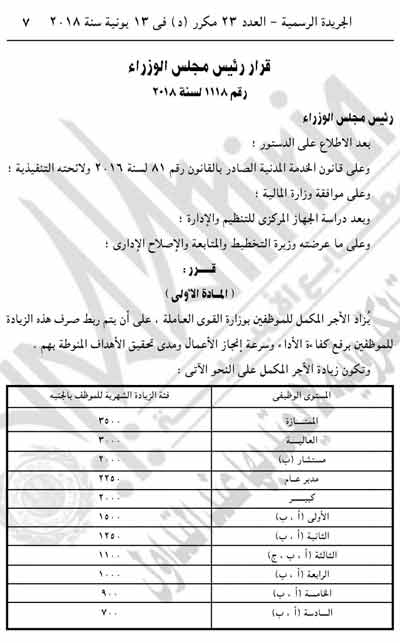 قامت الجريدة الرسمية اليوم بنشر قرار هام في عددها رقم 23 مكرر د ،والذي زفت فيه خبر سعيد إلي موظفي أربع وزارات بشأن زيادة الأجر المكمل لهم ، والذى جاء علي التالى: