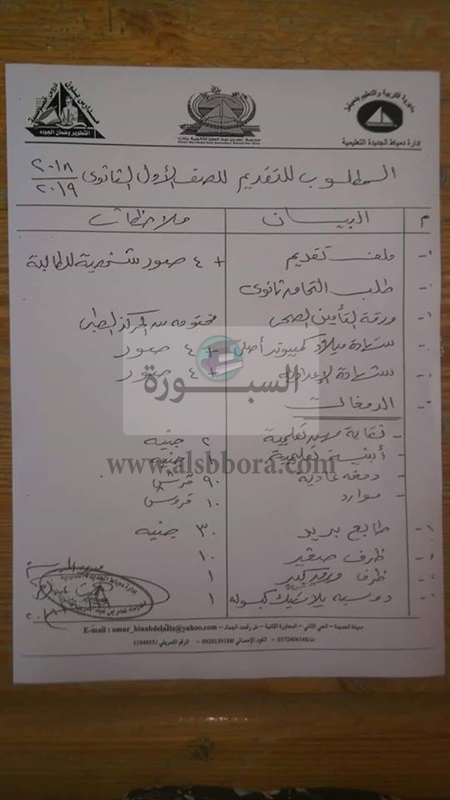 تنشر "السبورة" الأوارق المطلوبة للتقديم في الصف الاول الثانوي 2018 -2019 والتي تضمنت الأتي
