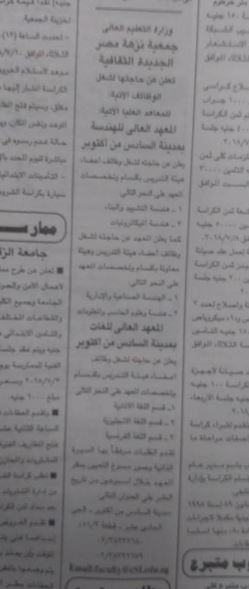 اعلنت وزارة التعليم العالى عن حاجتها الى اعضاء هيئة التدريس بمعهدى العالى للهندسة واللغات بمدينة 6 أكتوبر