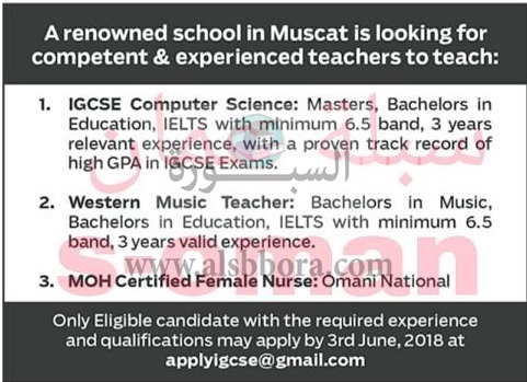 تعلن مدرسة خاصة في سلطنة عمان عن وظائف جديدة للمعلمين والمعلمات وذلك وفقا لنص الإعلان التالي:-
