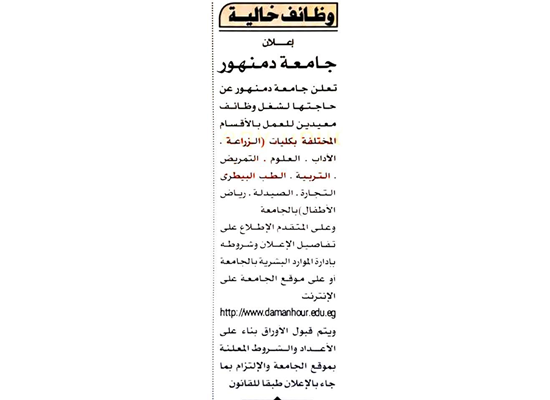 جامعة دمنهور تعلن عن حاجتها الى اعضاء هيئة تدريس.. ننشر نص الاعلان