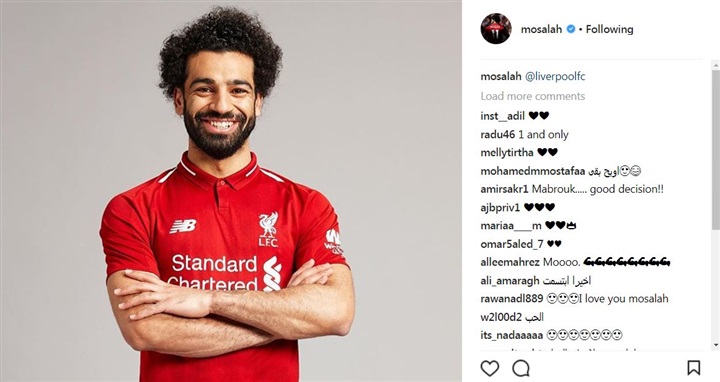 قام محمد صلاح، لاعب منتخب مصر ونادى ليفربول الانجليزى، بنشر صورته بقميص نادى ليفربول بعد تجديد عقده لمدة خمس سنوات إضافية، عبر حسابه بموقع تبادل الصور "أنستجرام".