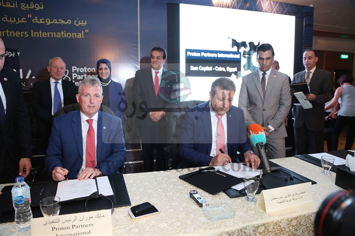 شهد مراسم توقيع اتفاقية الشراكة البروفيسور/ كارول سيكورا رئيس منظمة الصحة العالمية الأسبق، والسيد/ تشارلز جرين مؤسس شركة (Proton Partners International LTD - PPI)، والسيد/ إلين بارون المدير الإقليمي للشركة بمنطقة الشرق الأوسط وإفريقيا، والسيد/ أوليفيه هنسبرجر المدير التنفيذي لبنك ماربيود بالشرق الأوسط، ود.حسام عبد الغفار أمين مساعد المجلس الأعلى للجامعات لشئون المستشفيات الجامعية، ود.محمد الطيب معاون الوزير للشئون الفنية.