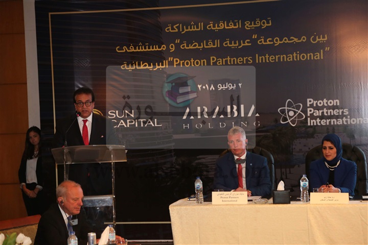 شهد د.خالد عبد الغفار وزير التعليم العالي والبحث العلمي نيابة عن د.مصطفى مدبولي رئيس مجلس الوزراء مساء أمس الاثنين مراسم توقيع اتفاقية الشراكة بين مجموعة "عربية القابضة" ومؤسسة Proton Partners International الرائدة في مجال خدمات المستشفيات ببريطانيا؛ لافتتاح أكبر مركز دولي متخصص في التشخيص والعلاج داخل مستشفى مشروع "صن كابيتال" بهدف تحسين مستوى الخدمة الصحية المقدمة للمواطن المصري، ونقل الخبرات الطبية العالمية لمصر، وذلك بأحد الفنادق الكبرى بالقاهرة.