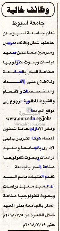 تعلن جامعة أسيوط عن وظائف جديدة لأعضاء هيئة التدريس "من حملة الماجستير والدكتوراه" وذلك وفقا لنص الإعلان التالي:-
