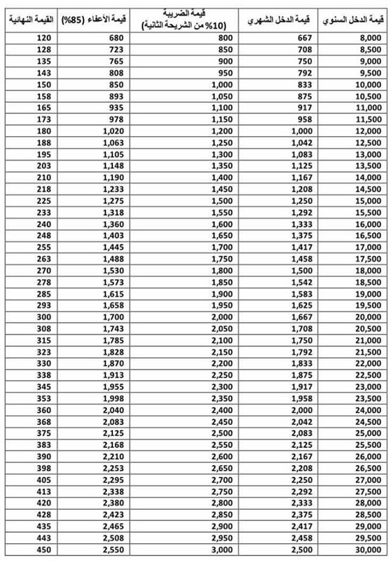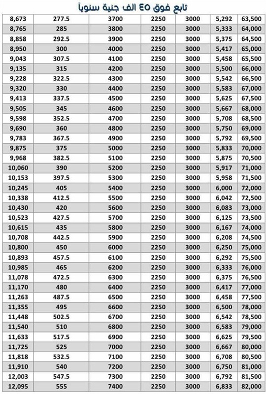 👈 شريحة اولى اقل من 8000 جنية ودي مش عليها ضرائب (دي الناس الي دخلها الشهري أقل من 650 جنية !)