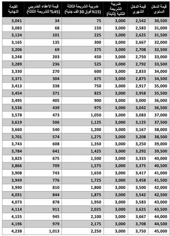 أهم حاجة حصلت في ضريبة الدخل أنه قلل حد الشريحة التالتة من 42 الف جنية الى 30 الف جنية