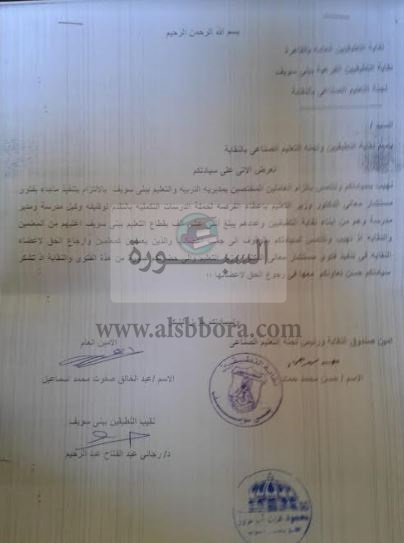 بناء على تواصل نقابة التطبيقين ببنى سويف مع النائب محمود عزت ابو عزوز عضو مجلس النواب عن دائرة مركز وبندر بنى سويف فيما يخص ضرورة إلزام المختصين بمديرية التربية والتعليم بتنفيذ ما جاء بفتوى مستشار وزير التربية والتعليم بإعطاء الفرصة لحملة الدراسات التكميلية بالتقدم لوظيفة وكيل مدرسة ومدير مدرسة .