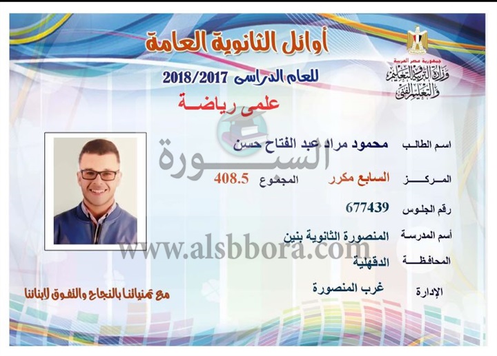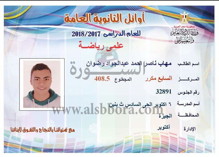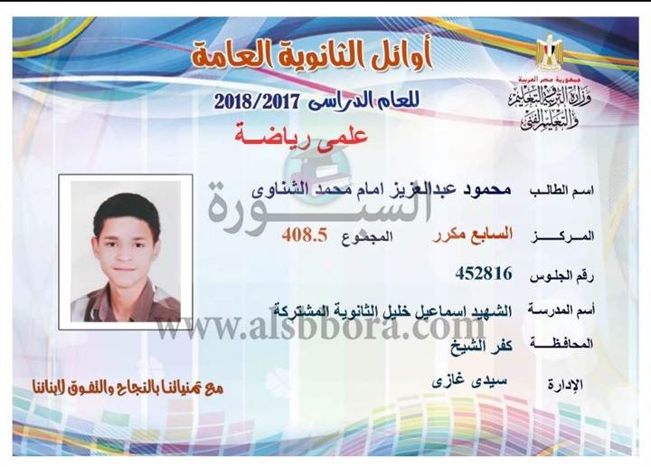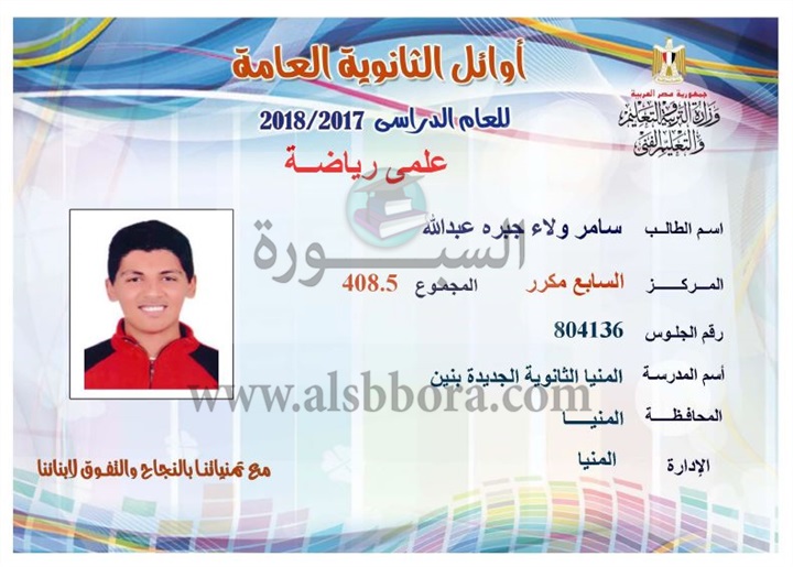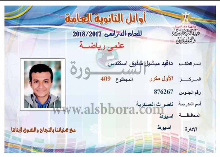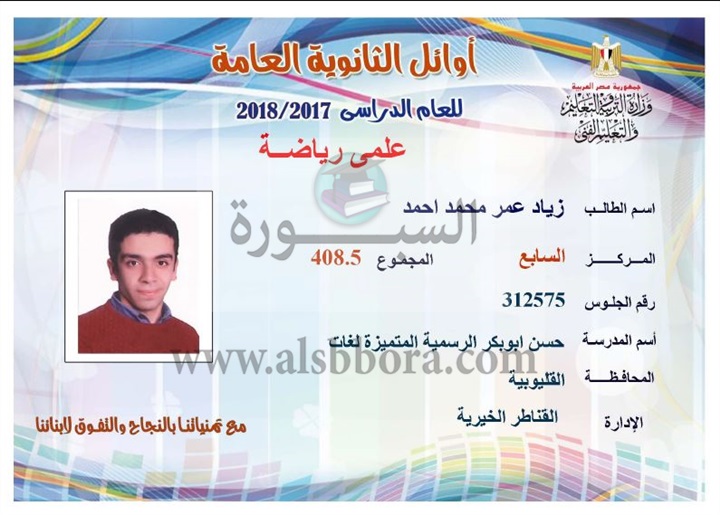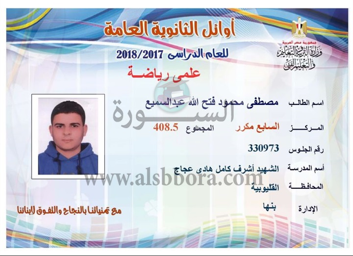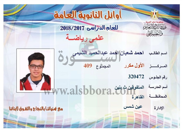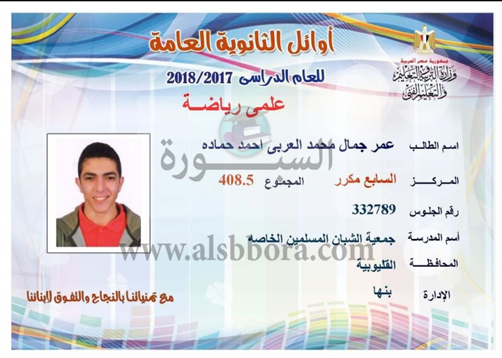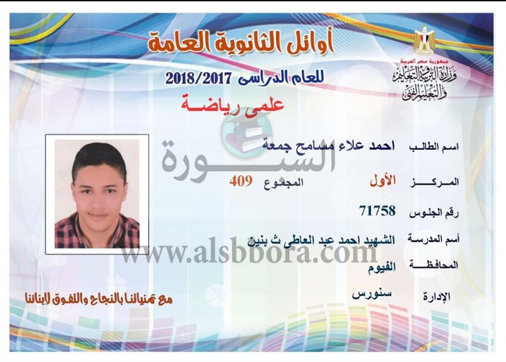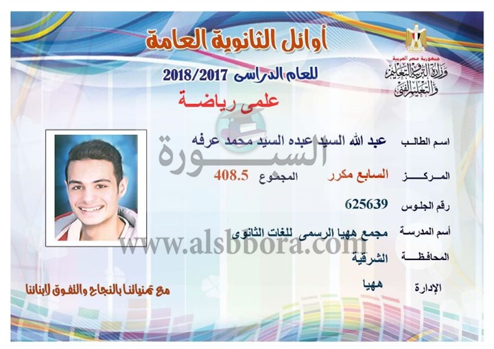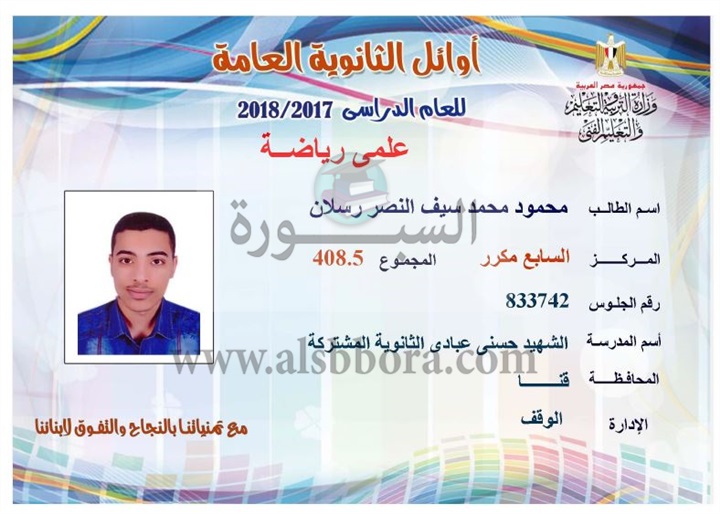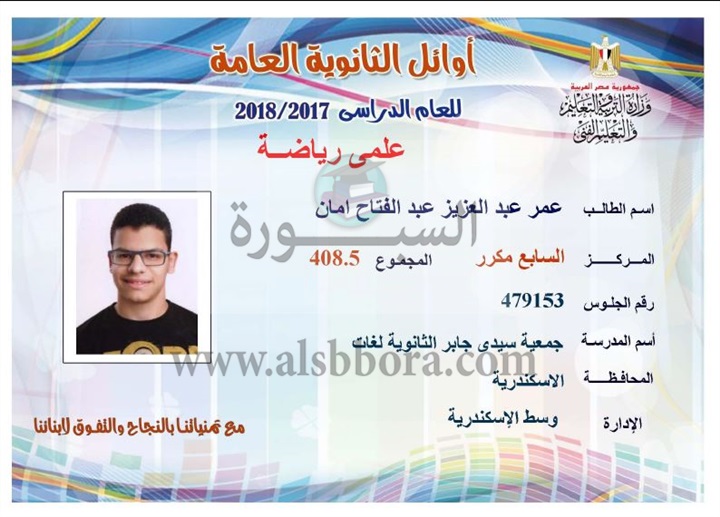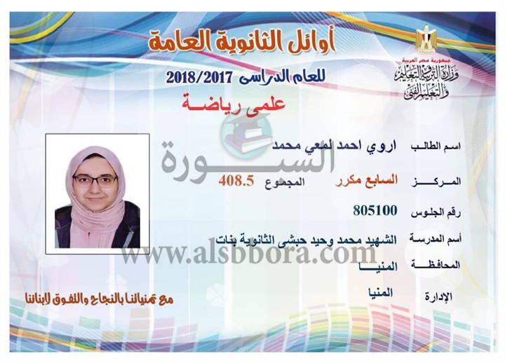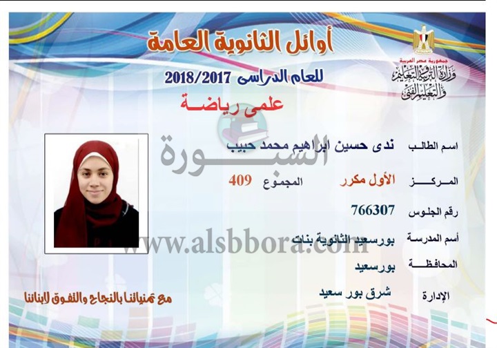 ننشر لكم بالاسماء والمجموع والمدرسة اسماء اوائل الثانوية العامة لقسم علمى رياضة