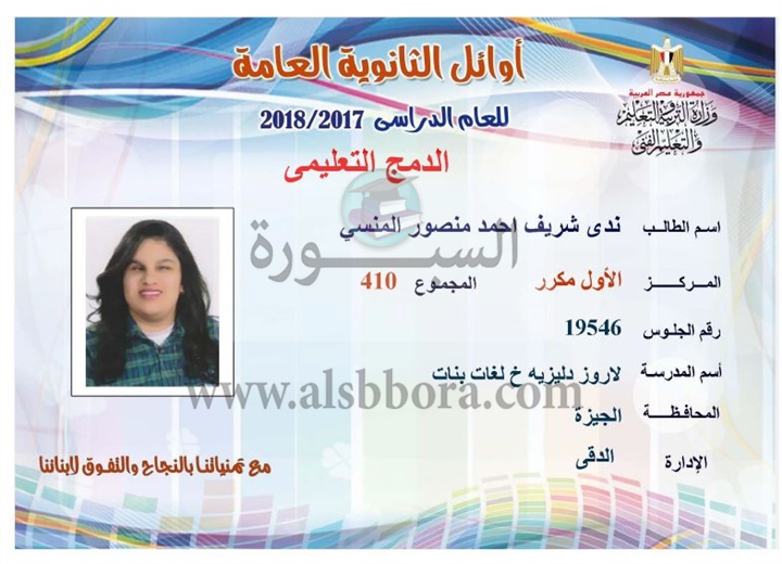 ننشر لكم بالاسماء والمجموع والمدرسة اسماء اوائل الثانوية العامة لطلاب الدمج