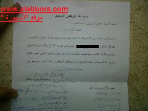 وفي 2012 حدد رئيس قسم بكلية الهندسة بجامعة المنيا امتحان لطلبة دفعة البكالوريوس ،لكن احدي الطالبات كان موعد خطوبتها يوم الامتحان فطلبت منه تأجيل الامتحان،فكان رده : لا متقلقيش خالص انا هديكي الدرجه كاملة بس انتي اسمعي كلامي وتعالي اشرحلك!! ،فوافقت بسبب ظروفها،قرب منها ومسك ايدها وشدها ناحيته ورمى نفسه عليها (كان عايز يحضنها )،لكنها صرخت وجريت من المكتب تبكي ،وابلغت أهلها بالقصة ..فذهبوا للكلية لكن العميد تدخل ووعدهم بإقالته من رئيسة القسم ،لكنه لم ينفذ وعده إلا بعد تظاهر الطلاب ضد العميد ورئيس القسم. وفي 2009 أستاذ بكلية الآداب بجامعة جنوب الوادى تم ايقافه عن العمل بعدما كشفت بعض الطالبات بقسم اللغة العربية بكلية الآداب بالجامعة فرع قنا في شكوى لرئيس الجامعة ، أن الأستاذ طالبهن بالقيام بأعمال منافية للآداب مقابل إعطائهن الدرجات النهائية فى المادة "وإلا ستتعرضن للرسوب