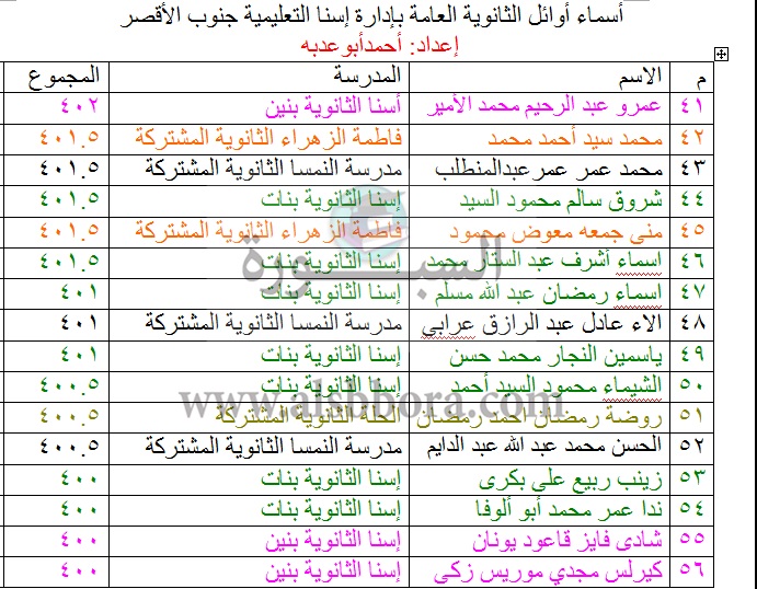 ننشر.. أسماء أوائل الثانوية العامة بإدارة إسنا التعليمية جنوب الأقصر