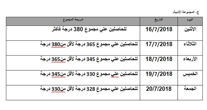 تنسيق الجامعات 2018 .. الحد الادنى للقسم الادبى 80 % للقبول بالمرحلة الاولى للتنسيق