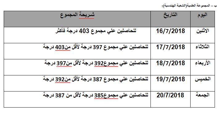 تنسيق الجامعات 2018 .. الحد الادنى "علمى علوم"96.10% "علمى رياضة" 93.90% للقبول بالمرحلة الاولى للتنسيق