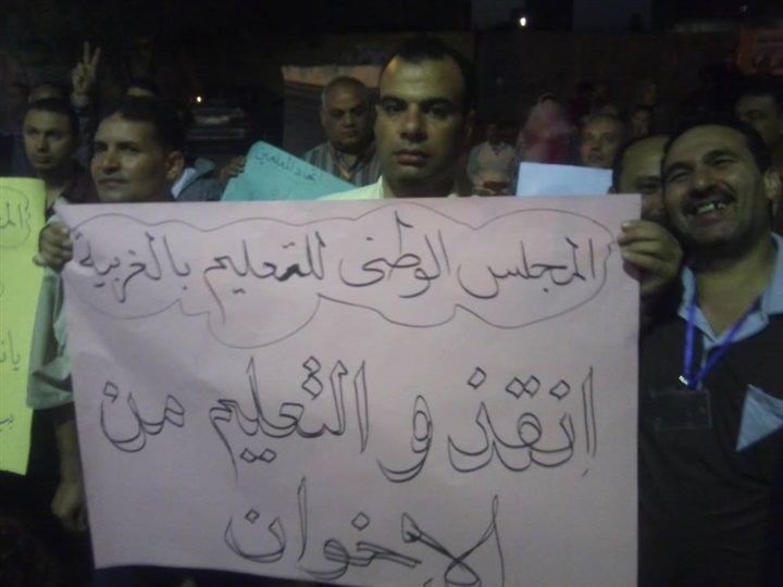 اضاف ان الوقفه لا تعنى الا مطلب واحد سحب الثقه من النقابه الاخوانيه حيث مالم يشهدة معلمى مصر ابدا هو ماتم اليوم من توحد فى الصفوف ولم الشمل لجميع الكيانات لتصبح يدا واحدة ضد جماعه محزورة لا تعمل الا لصالحها فقط .