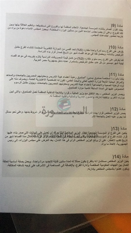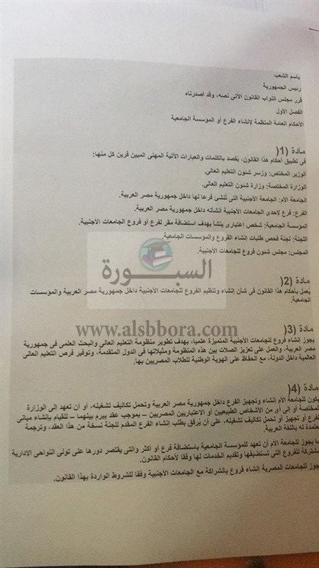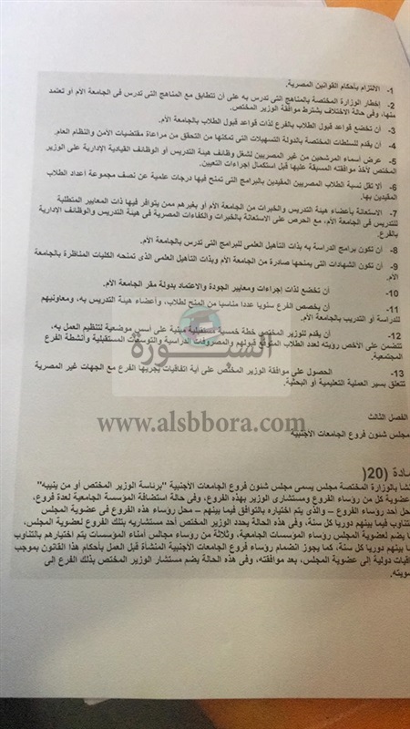 مشروع قانون بشأن إنشاء وتنظيم فروع للجامعات الأجنبية داخل جمهورية مصر العربية والمؤسسات الجامعية: