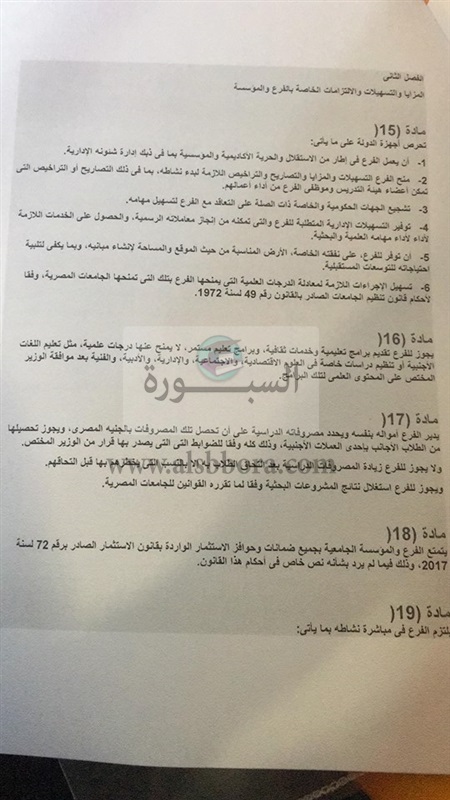 ننفرد بنشر نص قانون إنشاء وتنظيم فروع الجامعات الأجنبية في مصر بعد موافقة البرلمان