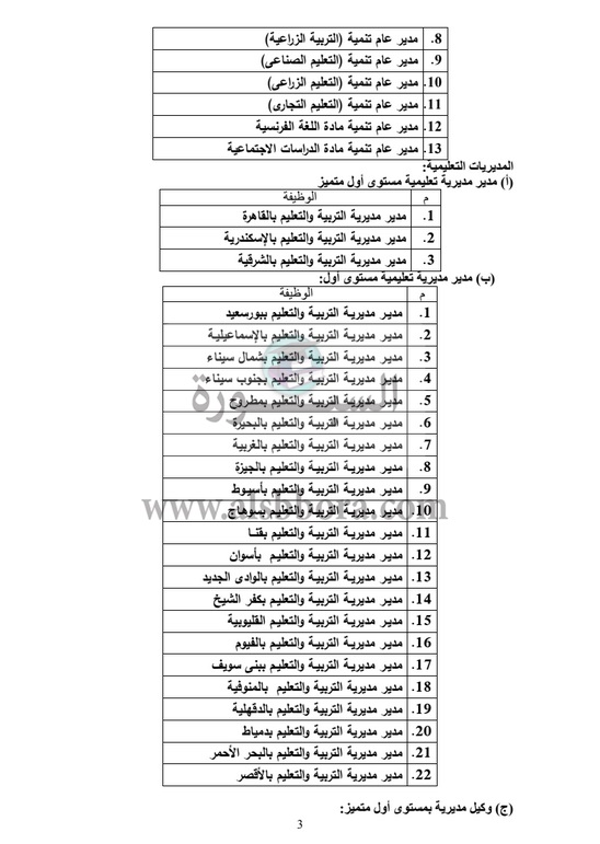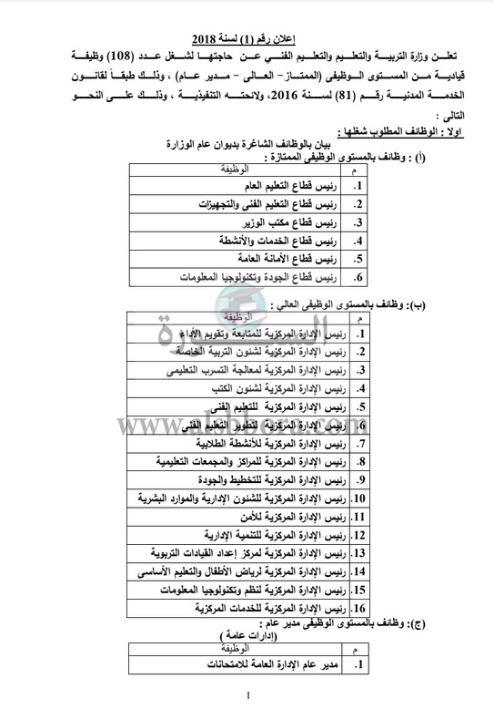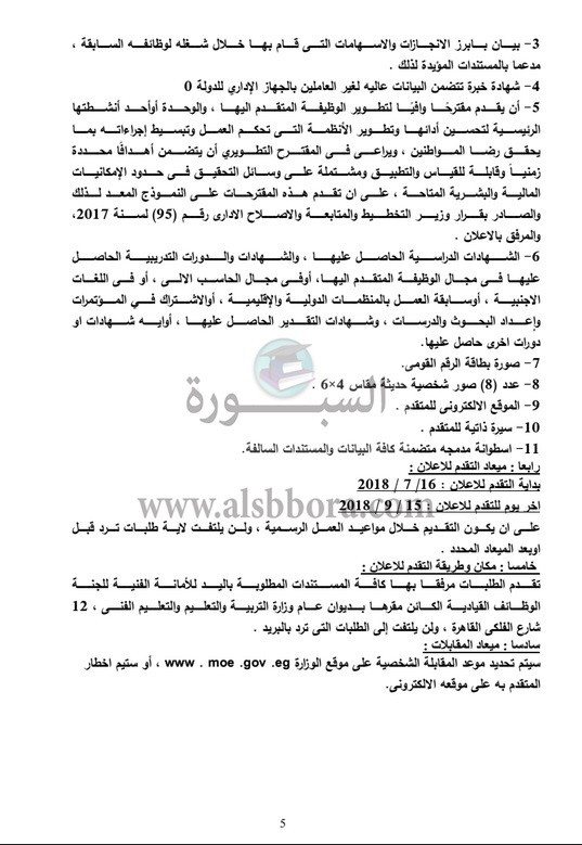 وفي ذات السياق، أعلنت وزارة التربية والتعليم عن انطلاق أكبر مسابقة لتعيين قيادات من المستوي الوظيفي "الممتاز - العالي - مدير عام" بمختلف المحافظات.