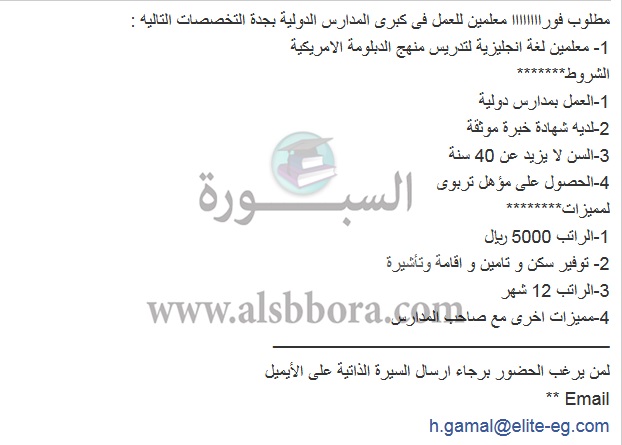 تعلن مدرسة خاصة في السعودية عن وظائف جديدة للمعلمين والمعلمات بمرتبات تبدأ من 5000 ريال وذلك وفقا لنص الإعلان التالي:-