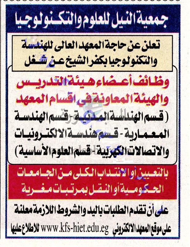 تعلن جمعية النيل الدولية عن وظائف جديدة لأعضاء هيئة التدريس "من معيد إلي أستاذ" وذلك وفقا لنص الإعلان التالي:-
