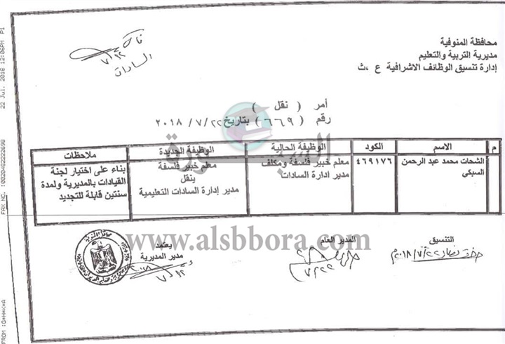 رسمياً : السبكي مديراً والنحاس وكيلاً لإدارة السادات التعليمية