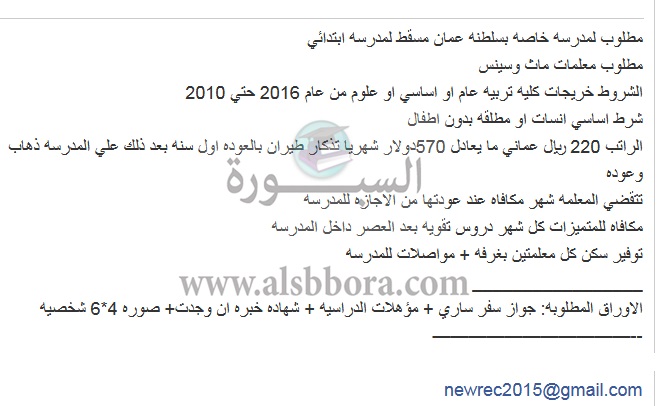 تعلن مدرسة خاصة في سلطنة عمان عن وظائف جديدة للمعلمين والمعلمات وذلك وفقا لنص الإعلان التالي: