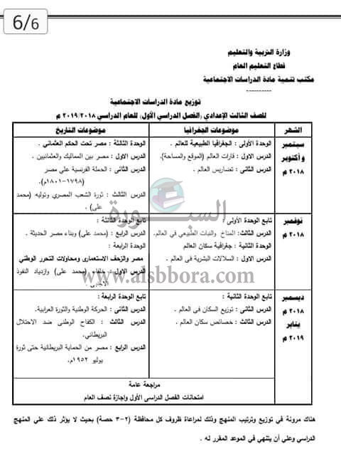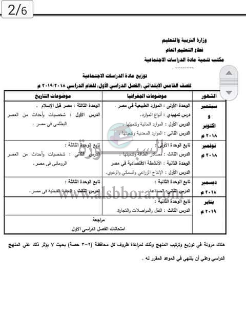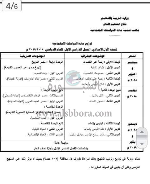 ننشر توزيع مناهج الدراسات الاجتماعية للعام الدراسي 2019/2018