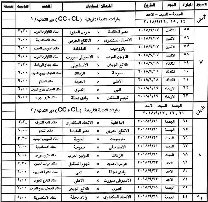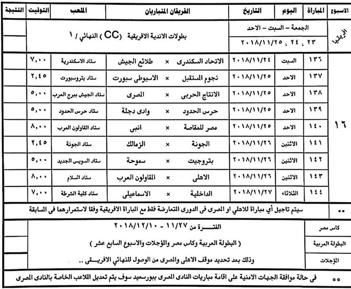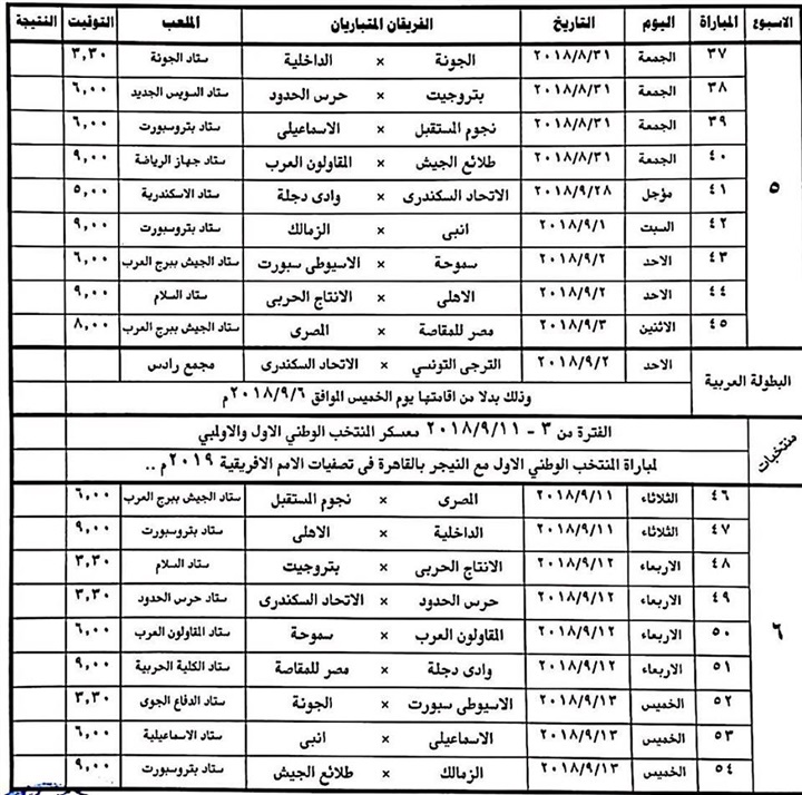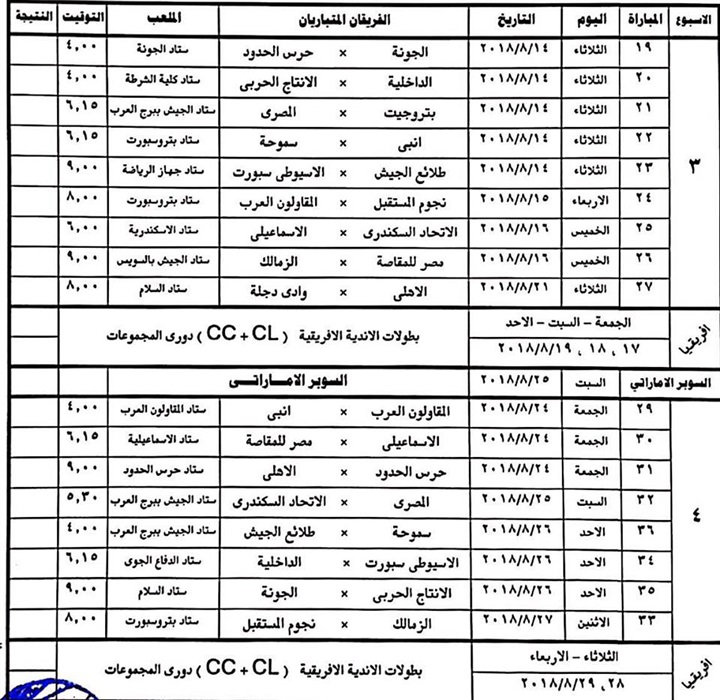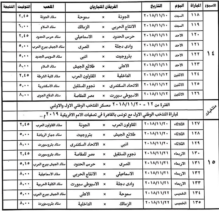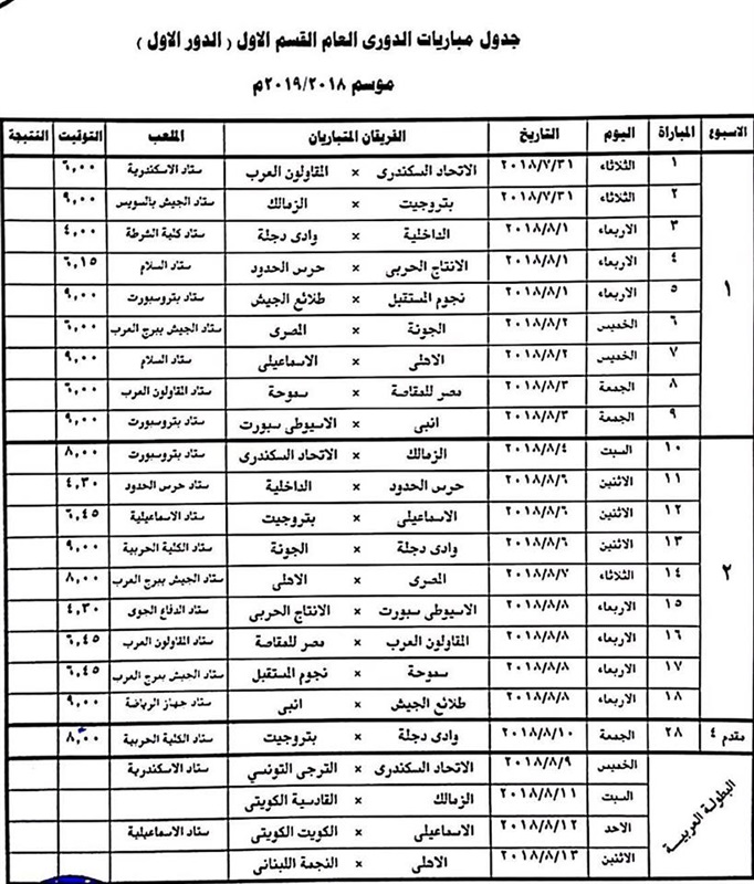 أعلنت لجنة المسابقات باتحاد كرة القدم عن تعديلات فى 16 اسبوعا من الدور الأول للدورى العام الجديد موسم 2019/2018، والذى من المقرر أن ينطلق فى 31 يوليو الجارى، حيث جاءت التعديلات كالتالى