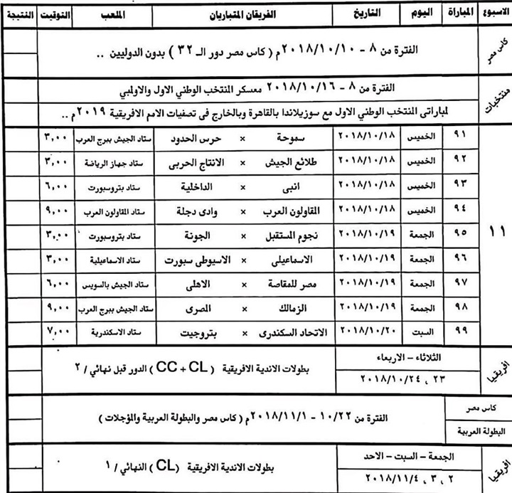 تعديلات جديدة على مسابقة الدورى العام.. ننشر الجداول