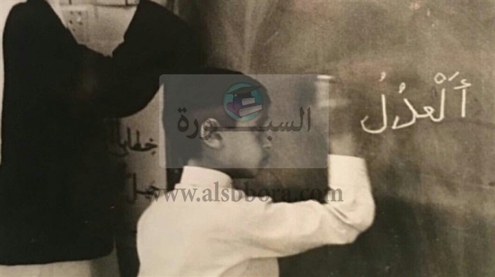 نشر حاكم دبي، الشيخ محمد بن راشد آل مكتوم، السبت، صورة نادرة لولي عهد أبوظبي، الشيخ محمد بن زايد آل نهيان، عندما كان طالباً وهو يكتب على "السبورة" اللوح المدرسي "العدل أساس الملك".