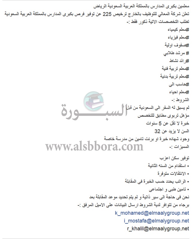 للتعاقد الفوري| السعودية تعلن عن وظائف جديدة للمعلمين والمعلمات في 9 مواد.. ننشر نص الإعلان