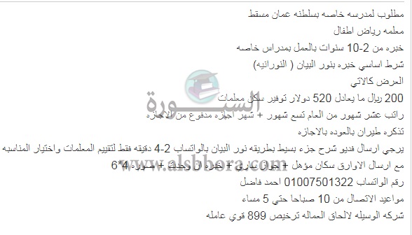 تعلن مدرسة خاصة في سلطنة عمان عن وظائف للمعلمين والمعلمات وذلك وفقا لنص الإعلان التالي: