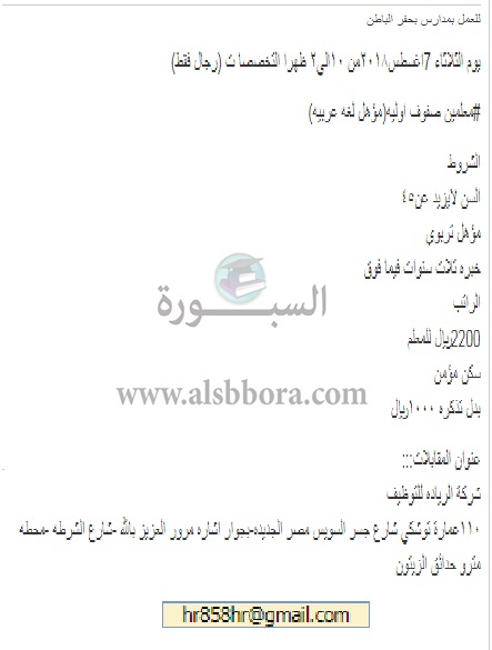 بمرتبات متميزة| مدارس حفر الباطن السعودية تعلن عن وظائف جديدة للمعلمين والمعلمات.. ننشر نص الإعلان