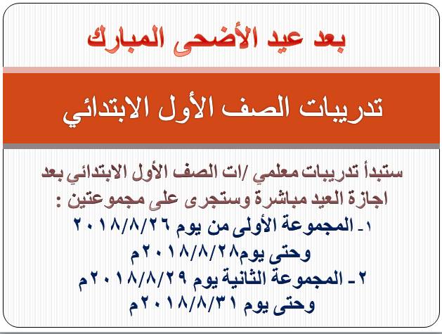 عاجل.. التعليم تعلن موعد تدريبات معلمى الصف الأول الابتدائى.. المجموعة الأولى 26 والثانية 29 اغسطس.. تعرف على التفاصيل