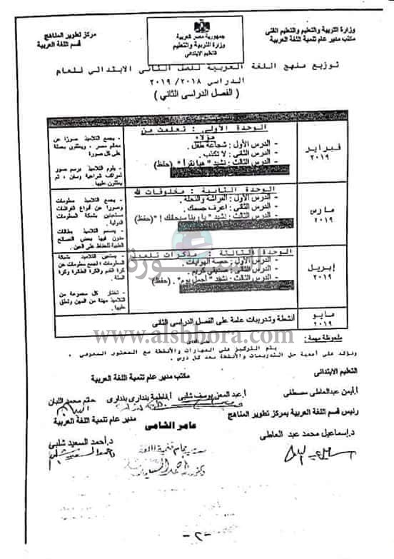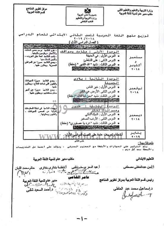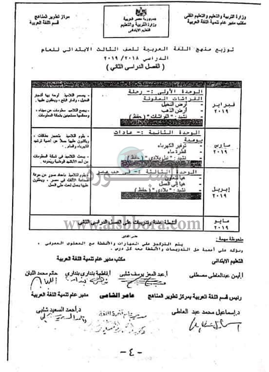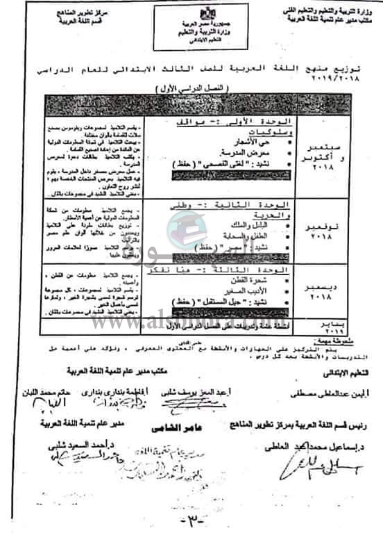 ننشر خريطة توزيع منهج اللغة العربية المرحلة الابتدائية 2019/2018