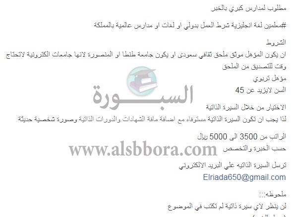 بمرتبات تبدأ من 5000 ريال | كبري المدارس السعودية تعلن عن وظائف جديدة للمعلمين والمعلمات.. ننشر نص الإعلان