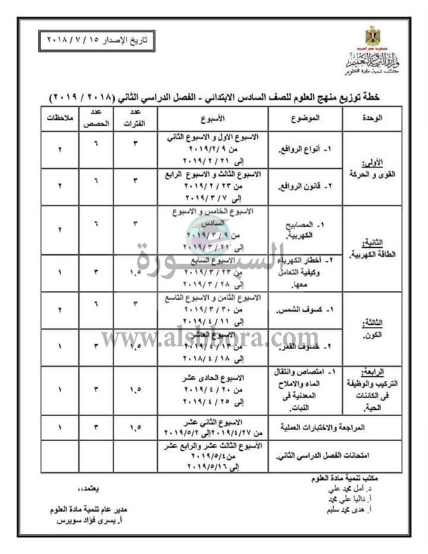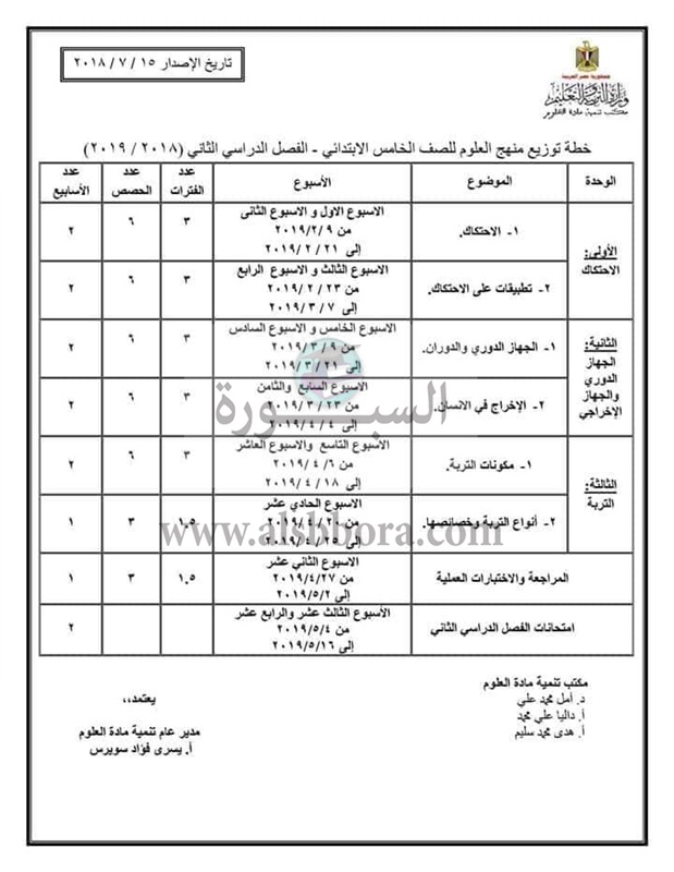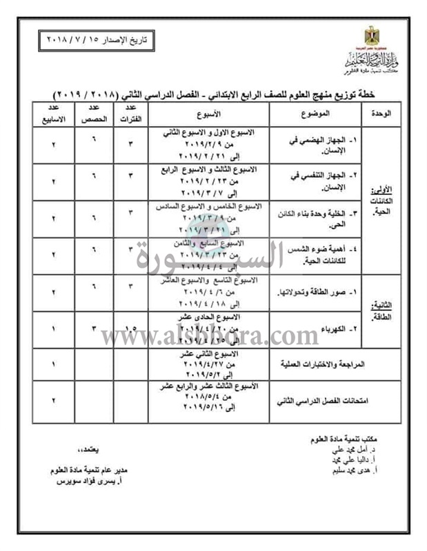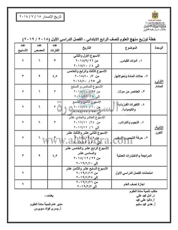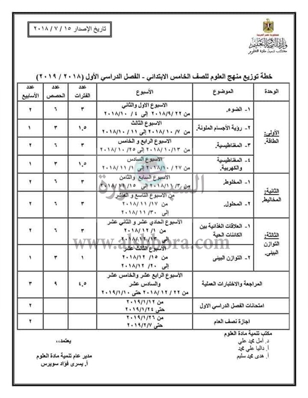 ننشر خطة توزيع منهج العلوم للمرحلة الابتدائية للعام الدراسى الجديد