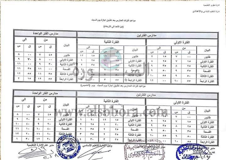 جدول مواعيد العمل بعد تطبيق إجازة يوم السبت بالمدارس