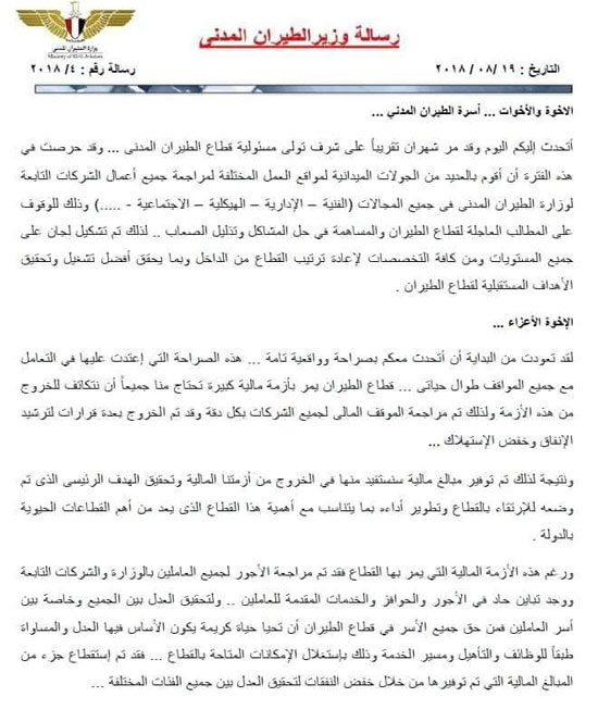 بقطاع الطيران المدني، اليوم الأحد، بمناسبة عيد الأضحى، أنه جرى تكليف اللجان المشكلة