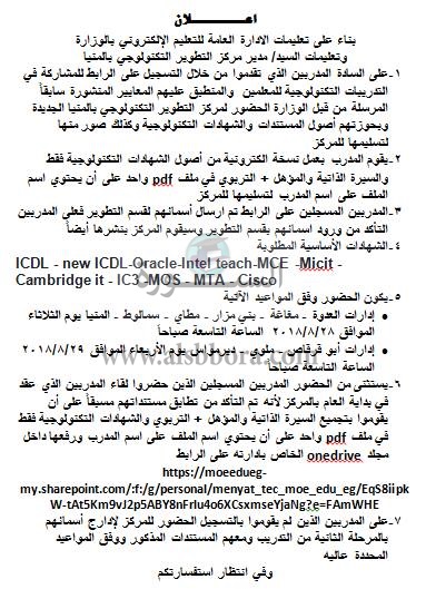 بناء على تعليمات الادارة العامة للتعليم الإلكتروني بالوزارة وتعليمات مدير مركز التطوير التكنولوجي بالمنيا