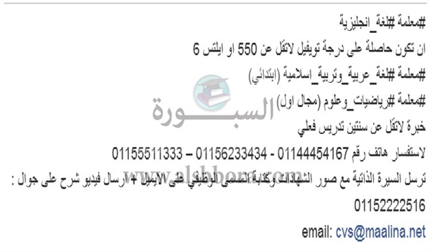 تعلن كبري المدارس العمانية عن وظائف جديدة للمعلمين والمعلمات وذلك وفقا لنص الإعلان التالي: