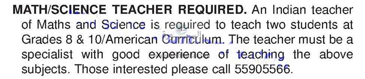 تعلن مدرسة خاصة في دولة قطر عن وظائف جديدة للمعلمين والمعلمات وذلك وفقا لنص الإعلان التالي: