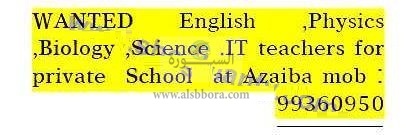 تعلن مدرسة خاصة في سلطنة عمان عن وظائف جديدة للمعلمين والمعلمات وذلك وفقا لنص الإعلان التالي:-